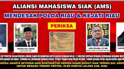 SIAK (Koalisinews.com), – Pernyataan Sikap Aliansi Mahasiswa Siak mendesak pemeriksaan terhadap Bupati Siak Afni Zulkifli…