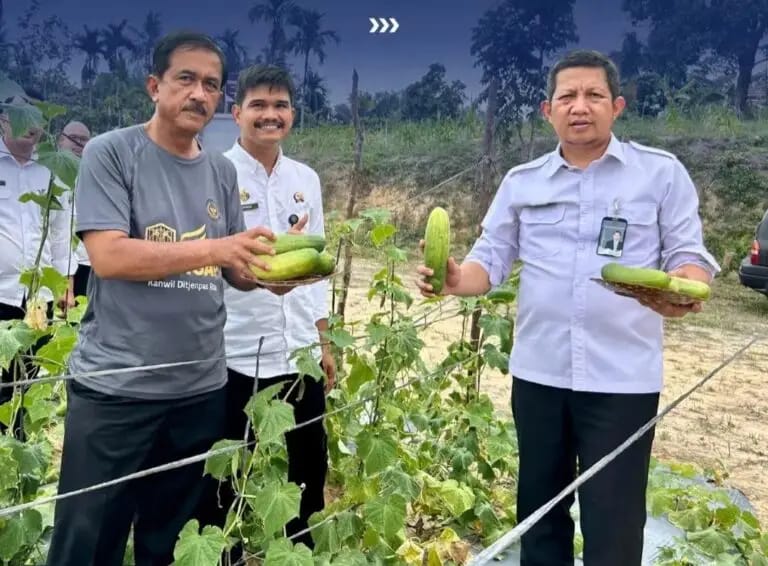 PEKANBARU (Koalisinews.com),– Kepala Kantor Wilayah Direktorat Jenderal Pemasyarakatan (Ditjenpas) Riau, Maizar, melakukan panen timun di Rumah Tahanan Negara (Rutan) Kelas I Pekanbaru, Senin (27/10/2025).