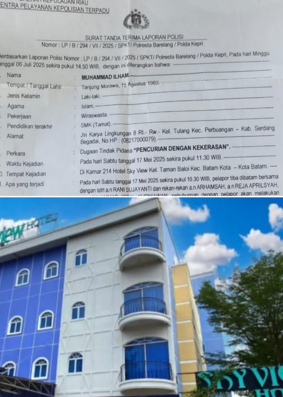 Batam (Koalisinews.com), — Muhammad Ilham, korban tindak pidana pencurian dengan kekerasan yang terjadi pada 17 Mei 2025 di Hotel Sky View, Baloi, Batam Center, hingga kini masih menunggu proses hukum yang jelas.