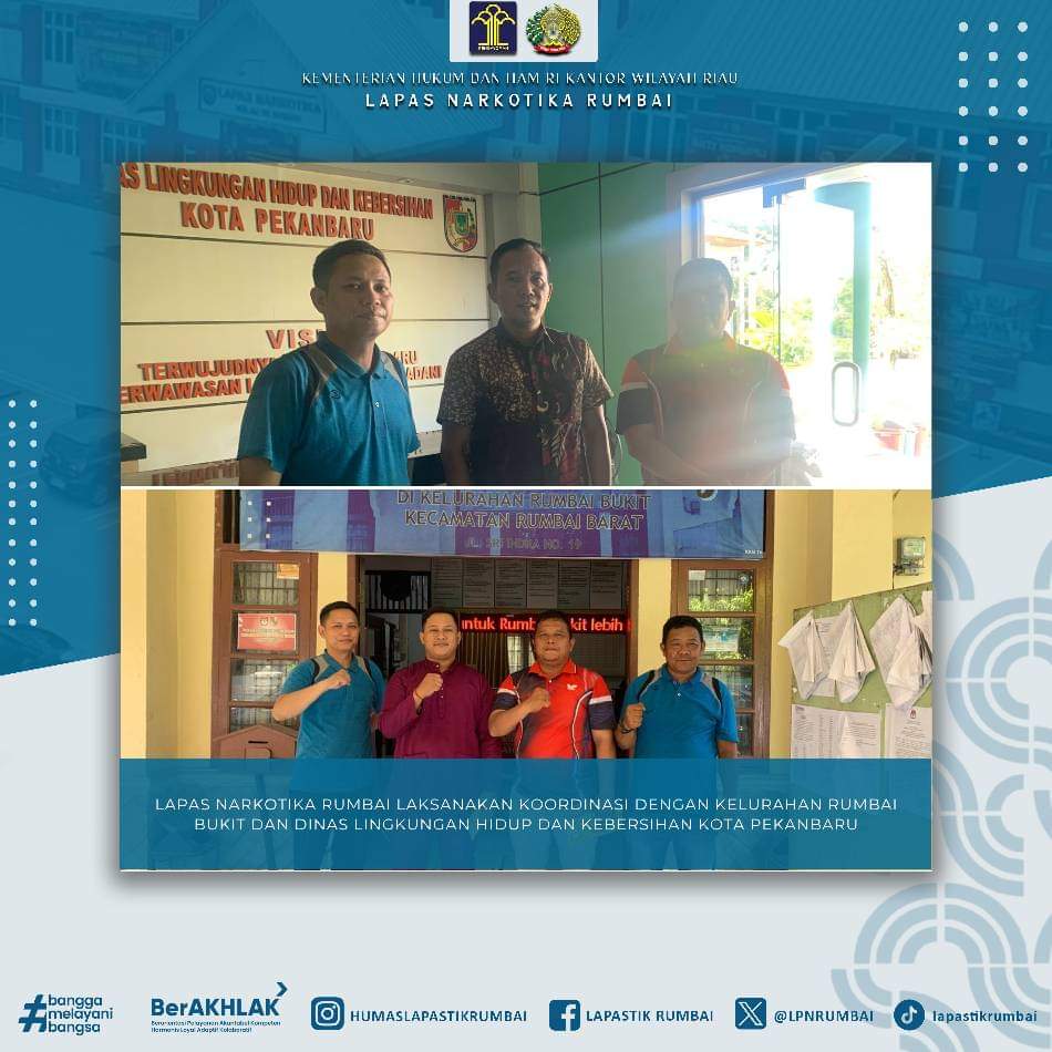 Pada Koordinasi tersebut Kepala Subbagian Tata Usaha, Ade Kurniawan didampingi Kepala Urusan Umum, Andy Ilham serta Staf Umum, Raja Yefriandi mengunjungi Kelurahan Rumbai Bukit, Hal ini disambut langsung oleh, Sekretaris Kelurahan Rumbai Bukit, Bima Kuncuro. Dalam hal ini, Lapas Narkotika Rumbai mengajukan terhadap perumahan liar atau rumah yang tidak memiliki izin resmi dari pemerintah dan kandang ternak babi yang ada di sekitaran pemukiman Lapas Narkotika Rumbai. Sehingga menimbulkan bau yang kurang sedap dan menganggu kenyamanan Para Petugas dan Warga Binaan Di Lapas Narkotika Rumbai.