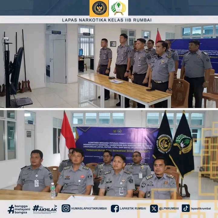 Pekanbaru (Koalisinews.com), – Lembaga Pemasyarakatan Narkotika Kelas IIB Rumbai Melaksanakan Penandatangan Komitmen Bersama Petugas Pemasyarakatan Dalam Memberantas Narkoba, Handphone dan Barang Terlarang di Lingkungan Lapas, Rutan, LPKA dan Bapas Seluruh Indonesia, Senin (20/10/2025)