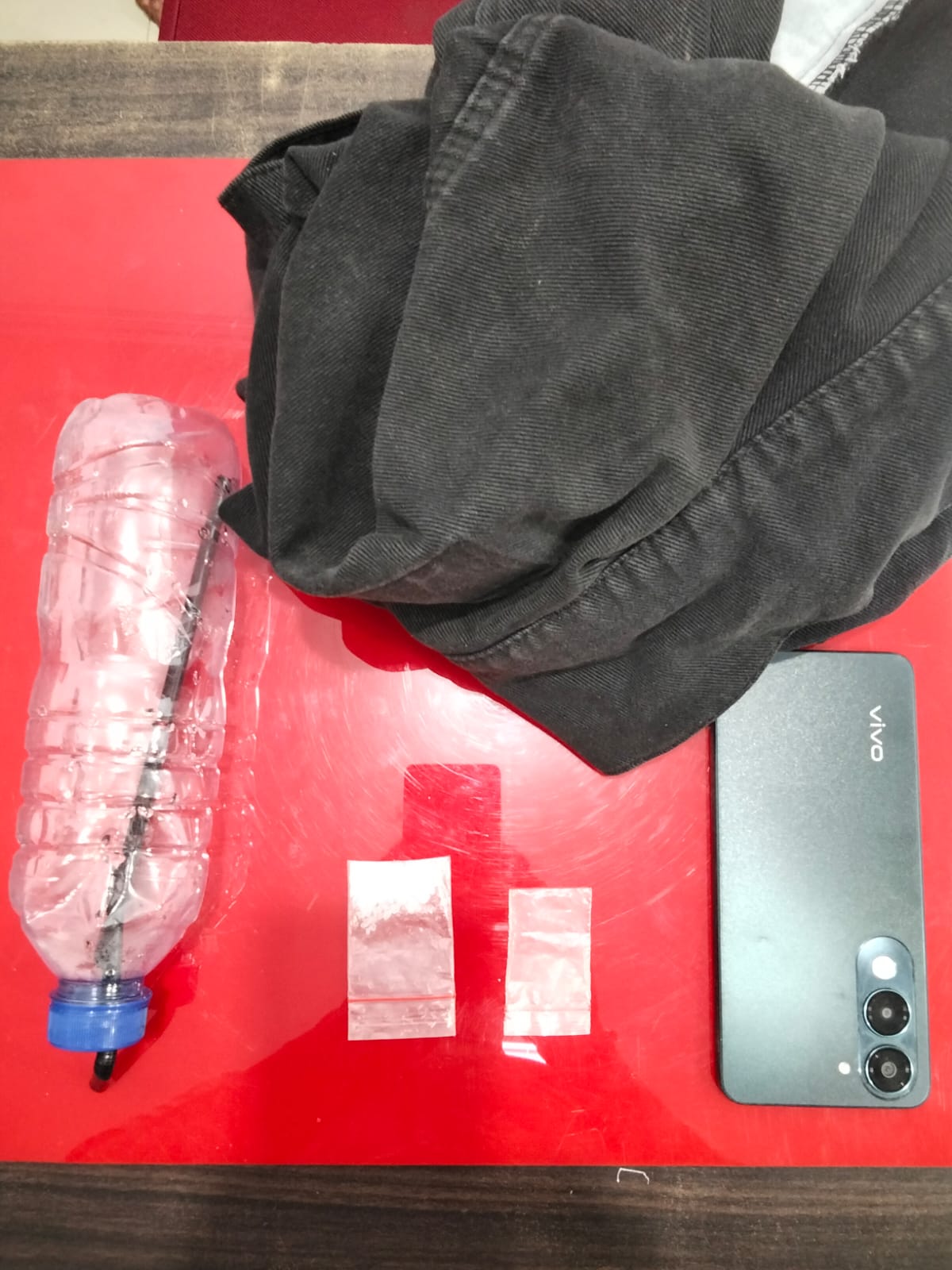Dari hasil penggeledahan, petugas menemukan barang bukti berupa satu paket narkotika jenis sabu dengan berat kotor 1,32 gram yang dibungkus plastik klip bening, satu plastik klip kosong, satu alat hisap (bong) dari botol plastik, satu helai jaket hitam, serta satu unit handphone android.