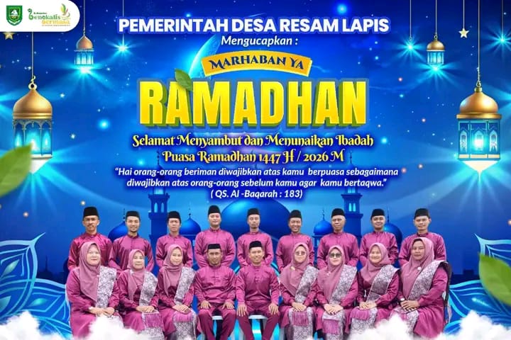 Bantan, (Koalisinews.com), – Pemdes Resam Lapis Kecamatan Bantan Kabupaten Bengkalis, Dengan penuh rasa Syukur dan kebahagiaan, yang diucapkan Pj Kepala Desa Resam Lapis, Bapak Muhammad Haris Pahlevi Rabu 18 Februari 2026 beserta seluruh jajaran Pemerintah Desa Resam Lapis mengucapkan Selamat Menunaikan Ibadah Puasa Ramadhan 1447 H/2026 M.,kepada seluruh Umat Muslim di Desa Resam Lapis dan sekitarnya.