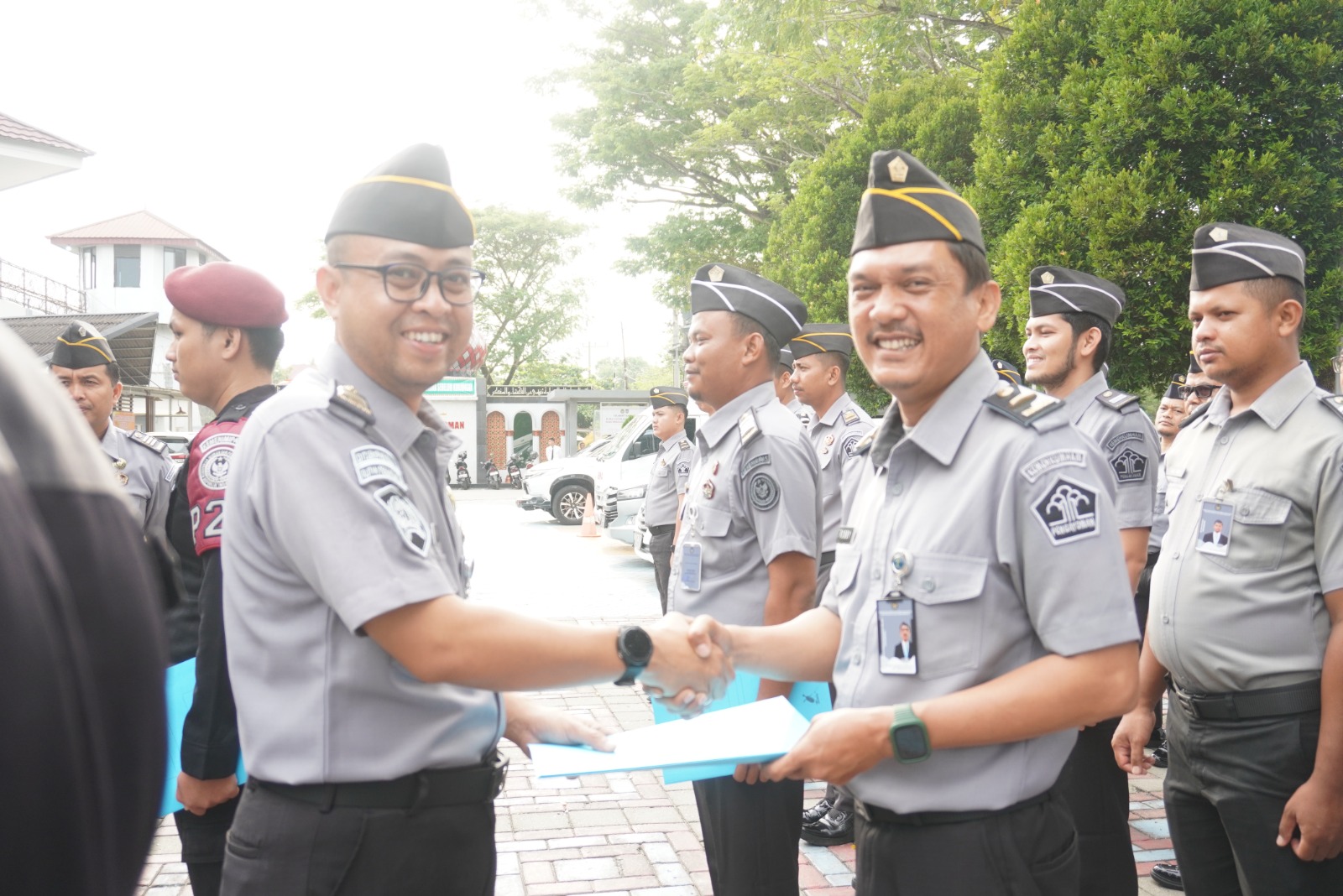 Pekanbaru (Koalisinews.com), — Rumah Tahanan Negara (Rutan) Kelas I Pekanbaru memberikan penghargaan kepada tujuh orang petugas yang dinilai menunjukkan kinerja luar biasa dan dedikasi tinggi dalam pelaksanaan tugas. Penghargaan ini diserahkan secara langsung oleh Plt. Kepala Rutan Pekanbaru yang hal ini diwakilkan oleh Kasi Pengelolaan dan Kasi Pelayanan Tahanan sebagai bentuk apresiasi atas semangat dan kontribusi nyata para pegawai dalam mendukung program pembinaan dan pengamanan, Senin (4/8).